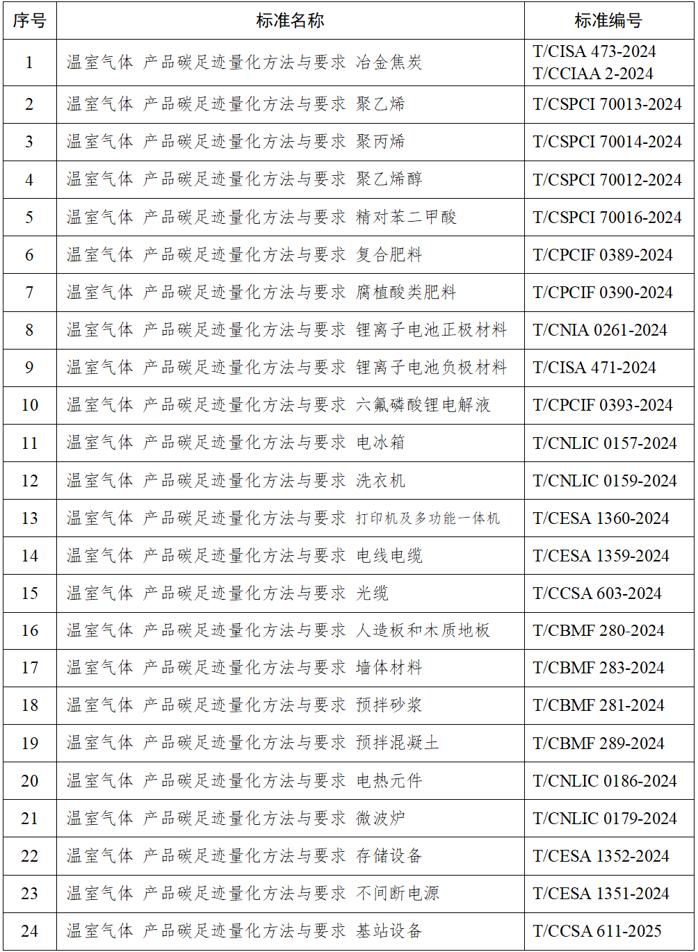 擬推薦工業(yè)產(chǎn)品碳足跡核算規(guī)則團(tuán)體標(biāo)準(zhǔn)清單(第二批)